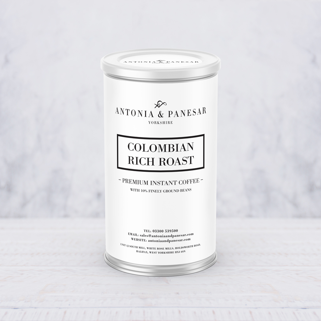Colombian Rich Roast 100g – Our Colombian Rich Roast is a special blend of instant coffee and finely ground roasted coffee beans. Smooth, well-balanced and aromatic this coffee provides a rich and satisfying flavour. Tastes delicious with or without milk. Made from 100% washed Arabica Coffee Beans. Origin: Colombia